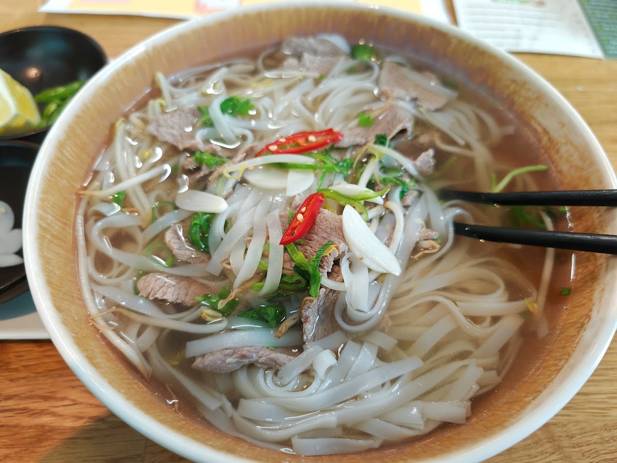 Die Pho Bo, die ich hier probieren durfte, war absolut fantastisch und zählt zu der besten, die ich je gegessen habe. Die Brühe war der absolute Star – klar, intensiv duftend und von einer unübertroffenen Tiefe im Geschmack. Man schmeckt heraus, dass sie hier lange und mit viel Sorgfalt gekocht wurde. Das Rindfleisch war hauchdünn geschnitten und zart, sodass es in der heißen Brühe perfekt gar wurde. Die Reisnudeln hatten die ideale Konsistenz – weich, aber dennoch bissfest. Top
